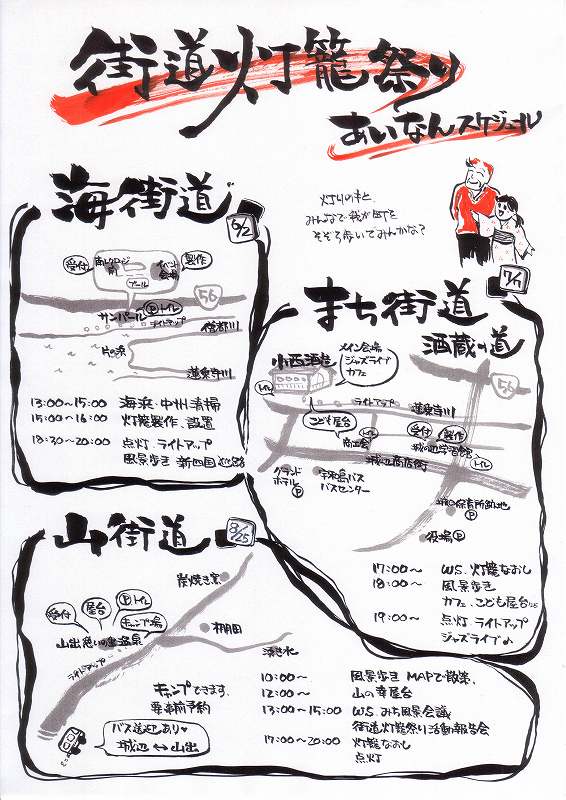 さて、街道灯籠祭り〜酒蔵の道をゆく〜は、夕方6時から8時がメイン。 40年ぶりの蛍の復活を遂げた「蓮乗寺川を綺麗にしたい会」が、手塩にかけた川端に300個の灯籠を並べます。 5時からろうそくを入れて並べていくので、お手伝い下さい。 黄昏時に点灯。小西酒蔵前では芳香を放つ松明にも火がつきます。 美しい風景を五感いっぱいで味わってください。