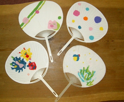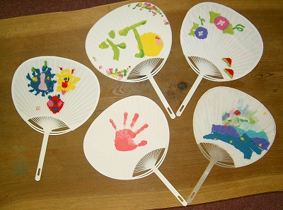 笹まつり会場では、大笹飾りを作り、学習館前の大石灯籠に飾り付けます。 灯籠製作も300個、6/9の僧都川河口〜海街道をゆく〜を彩った灯籠を引き継いで行います。 土佐和紙を取り寄せたちぎり絵うちわも致します。 ・・・灯籠祭り会場のうちわ製作コーナー(ちぎり絵・手形・墨書など)でも体験できます・・・